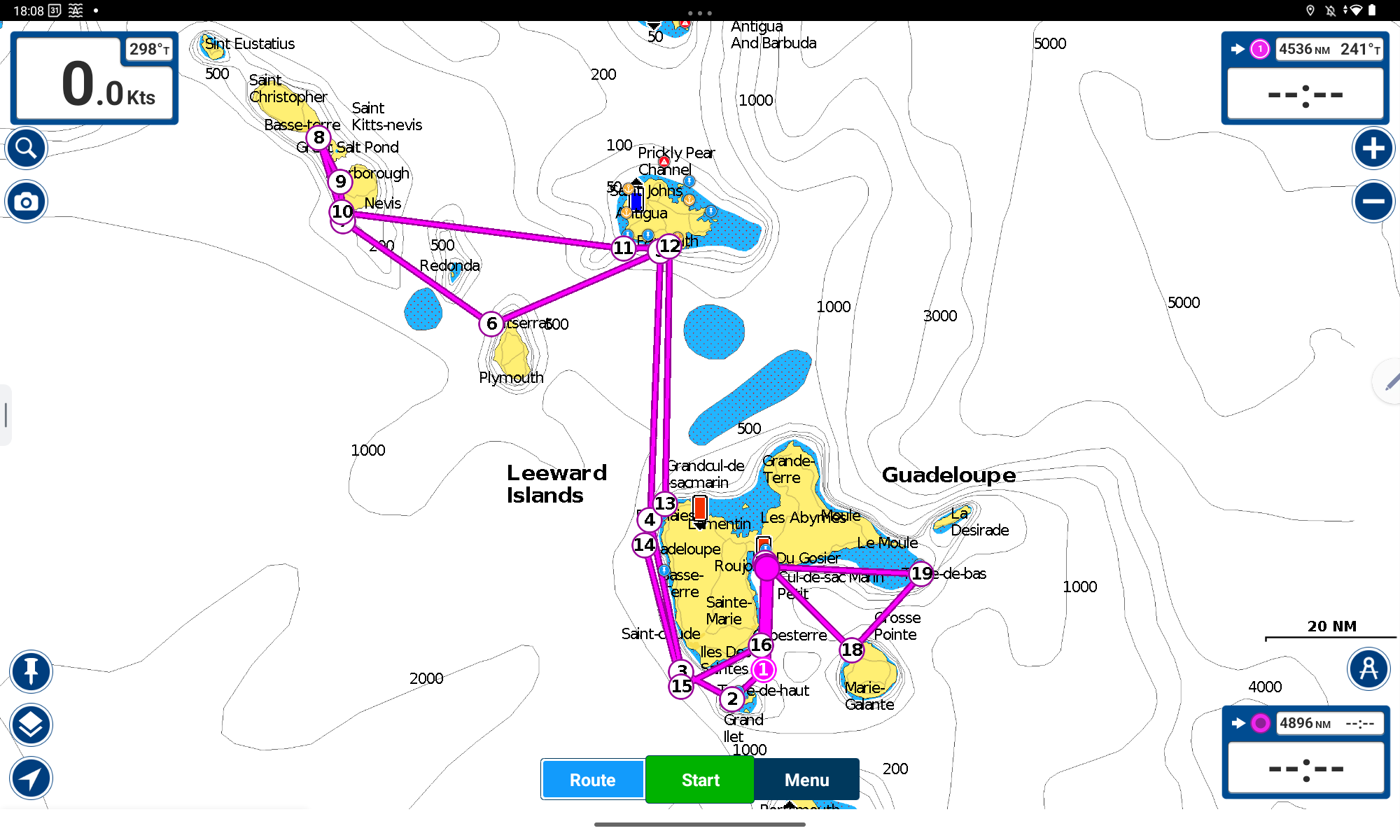 Przykładowa 11-dniowa trasa 1-way Martynika-Grenada: